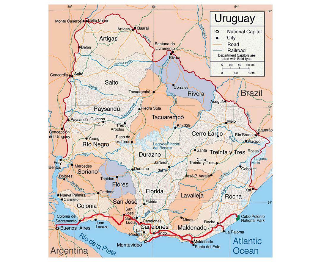 Map of Uruguay with citie. Map of Uruguay with cities (South America - Americas) to print. Map of Uruguay with cities (South America - Americas) to download.